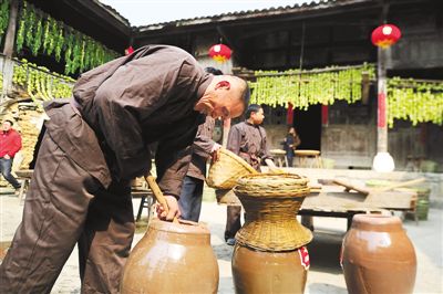 涪陵榨菜传统制作工艺中的“装坛”。