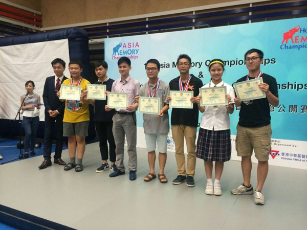2015年8月,陈智强(前排左二)赴香港参赛,获得“亚洲记忆大师”证书。