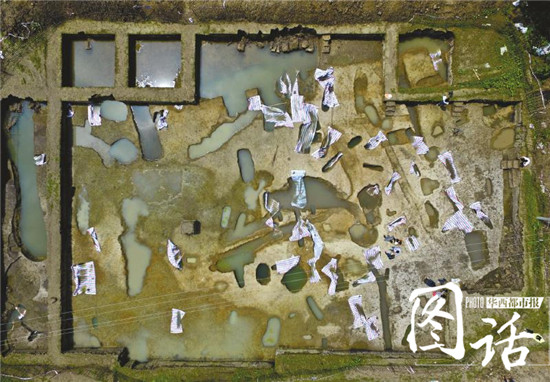 空中鸟瞰高山古城遗址发掘现场全貌。