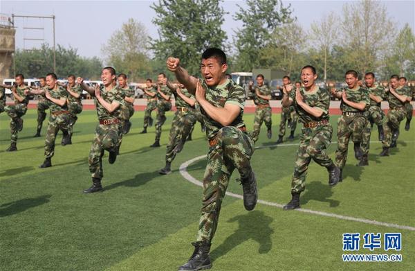 4月18日,河北省公安边防总队特勤队官兵在进行格斗拳训练。近日,河北省公安边防总队特勤队官兵针对河北沿海辖区特点,从实战出发,制定不同的处置方案,开展城区、海滩和丛林处突技能训练,以提高官兵在执行急难险重任务时的综合能力。新华社记者 杨世尧 摄