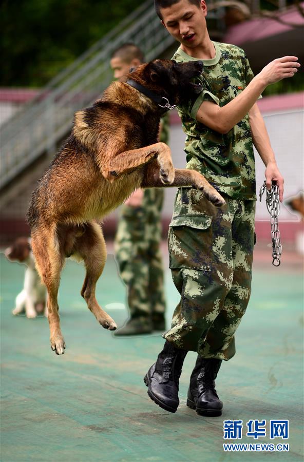 警犬春训:一天三次澡 “萌姿”惹人爱