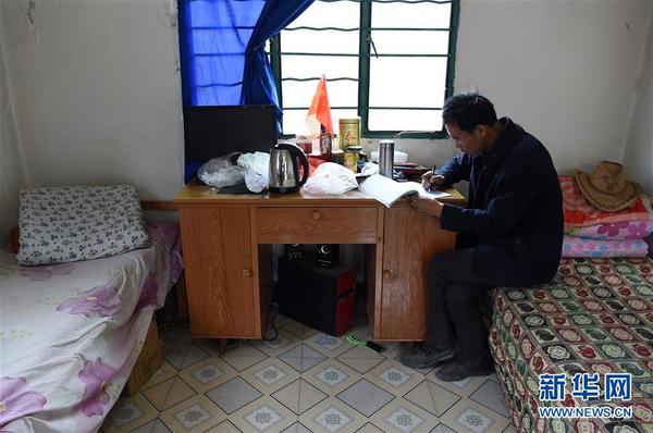 4月19日,刘生家在林业管护站填写防火记录。新华社记者 范培珅 摄