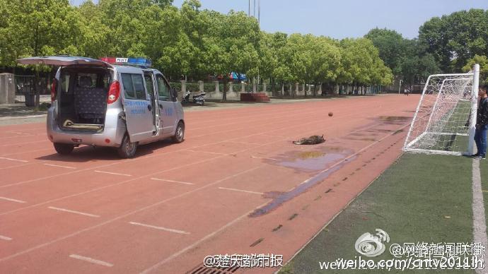 网传武汉高校保安开车碾压流浪狗4次 校方回应(图)