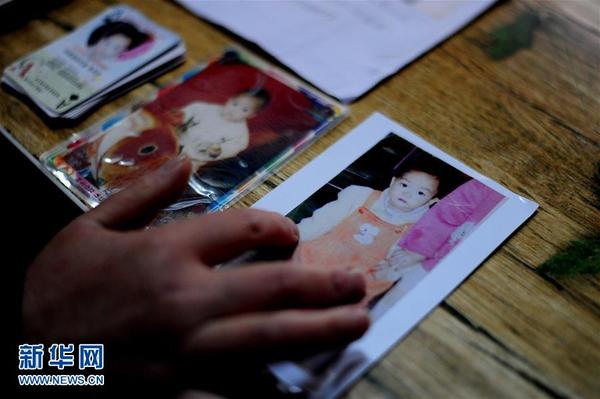 4月20日,钱爱芬的手指从女儿陈贝贝的照片上滑过。新华社记者冯大鹏 摄