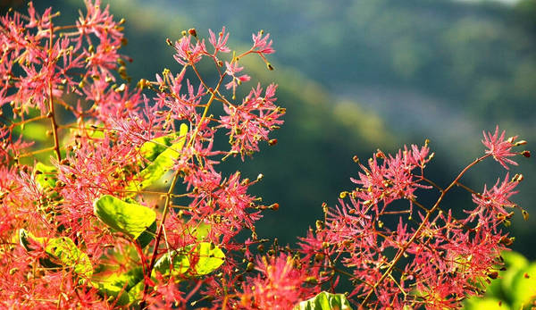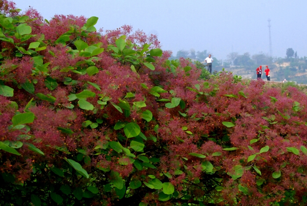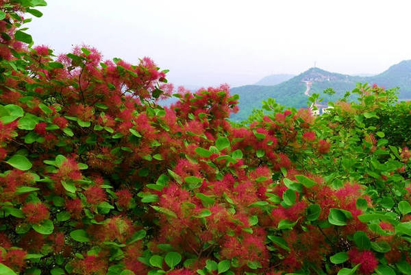 阳春四月,位于郑州市西巩义市竹林镇的国家AAA景区、全国农业旅游示范点长寿山,以其良好的自然生态资源而吸引了海内外的游客。特别是漫山遍野的黄栌树,当前正是黄栌花开漫山的时节,黄栌吐蕊,渐渐盛开紫红色的绒花,一团团、一簇簇点缀在绿叶之上,近观如羽绒柔软,远观如烟似雾缭绕群山。长寿山景区以其漫山遍野的黄栌红花景观而被网友推荐为中原地区十大观赏黄栌的景区之首。春已深,花开遍野,出游相约,徜徉在春风里,欢声笑语洒满林区小路,曼妙长寿山只为等您!