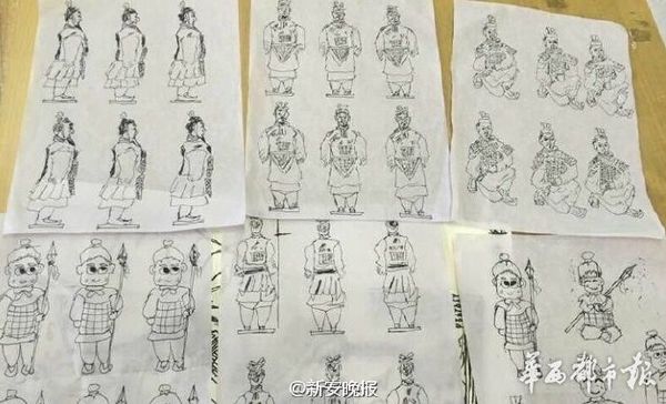 而另一位迟到的学生则画了一百多个兵马俑。看看这画风↓