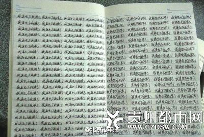 3月23日,贵州民族大学大三学生因逃课被罚手抄2000遍“我再也不逃课了”。