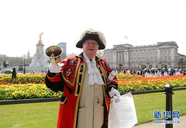 4月21日,在英国伦敦,一名身着传统街头传令员服装的男子庆祝英国女王伊丽莎白二世的90岁生日。 4月21日是伊丽莎白二世的生日,但其官方生日一般定在6月。 新华社记者韩岩 摄