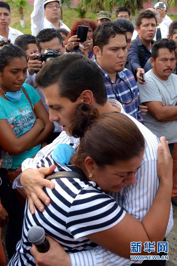 这张墨西哥总统府提供的照片显示,4月21日,在墨西哥韦拉克鲁斯州夸察夸尔科斯,墨西哥总统培尼亚·涅托(左前)视察发生爆炸的石油化工厂。墨西哥国家石油公司21日宣布,20日下午发生在该公司化工厂的爆炸事故已经造成24人死亡,仍有18人失踪。 新华社发