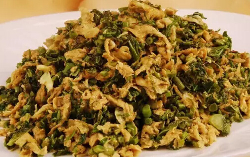 很经典的吃法,把烫熟的香椿切成末,放在豆腐上;然后用盐、香油进行调味就成了。豆腐的爽滑和香椿的鲜嫩合而为一,爽口又开胃。
