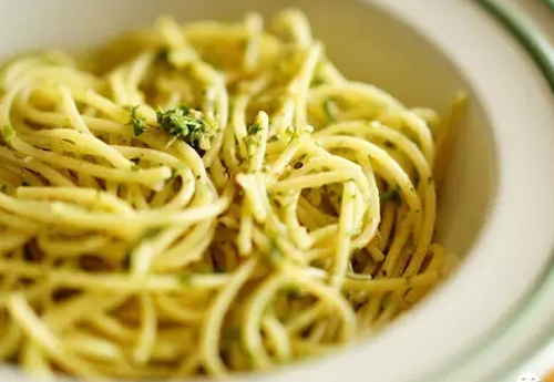 把意面煮熟后用香椿酱拌一拌,再加些煮熟的虾仁,味道一点不比青酱意面差!