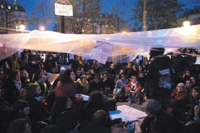 活动组织者朱尔告诉记者,“黑夜站立”最初是为了反对劳动法修改草案,“但现在大家探讨更多的话题是,为什么法国社会陷入僵局?为什么各种问题没有解决出路?”