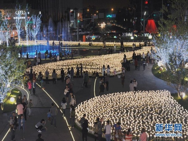 4月24日,市民在“夜光玫瑰花海”艺术景观内参观。近日,成都一家商场引入的“夜光玫瑰花海”艺术景观向市民开放,吸引大量市民前来参观、拍照。据了解,此次“夜光玫瑰花海”艺术景观由特制的玫瑰形状的灯饰品制成。新华社发(金马梦妮摄)