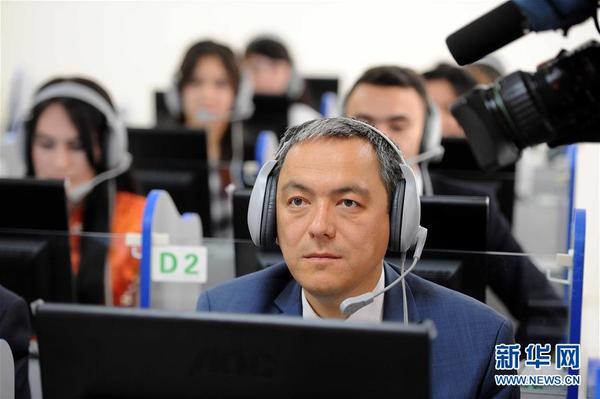 4月24日,在乌兹别克斯坦首都塔什干的乌兹别克斯坦世界语言大学,乌兹别克斯坦世界语言大学校长卡尤莫夫在新落成的语音教室里与学生一起体验授课。当日,由中国驻乌兹别克斯坦大使馆赠建的乌兹别克斯坦世界语言大学多媒体语音教室正式投入使用。中国驻乌兹别克斯坦大使孙立杰、乌兹别克斯坦世界语言大学校长卡尤莫夫等参加语音教室建成投入使用仪式。新华网记者沙达提摄
