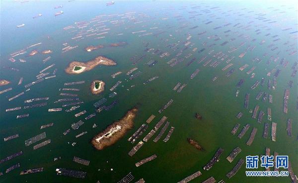 广西钦州市茅尾海海域内绵延十里的生蚝养殖排(2015年10月21日摄)。钦州是中国著名的蚝苗培育和大蚝生产基地,素有“中国大蚝之乡”的美誉。全国70%的蚝苗产于此,大蚝养殖面积15万亩,年产量20万吨,成为当地人增收致富的重要来源。新华社记者 黄孝邦 摄