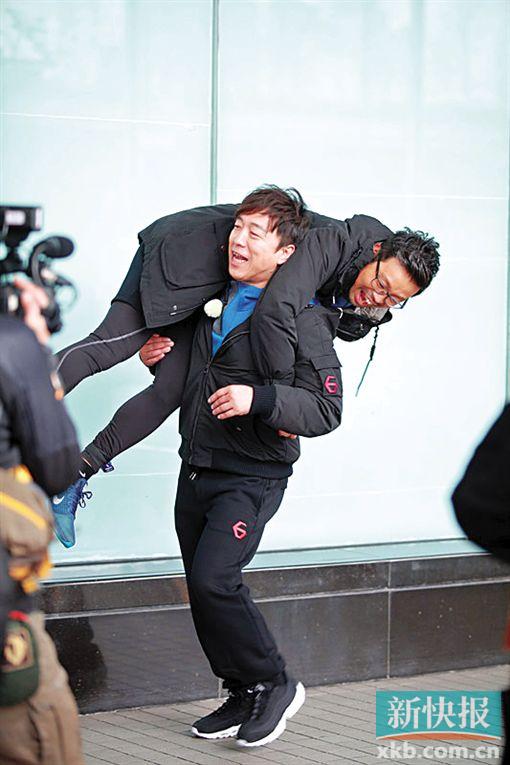 孙红雷和“小猪”罗志祥却似乎不太顺利,孙红雷先是“耍赖皮”上了一辆废品车,路遇“小猪”,两兄弟见面分外开心随即玩起了猜拳,输的人背赢的人走十步。本来一派祥和,然而没几分钟这兄弟情深的画风就变成兄弟相弃,孙红雷看见一辆电动车后,果断抛弃了罗志祥。罗志祥悲从中来,“跟这种不靠谱的人同盟就是这种下场,不靠谱!”随后他却突然心生一计,干脆一下子蹿到跟拍自己的摄像大哥背上。![]()