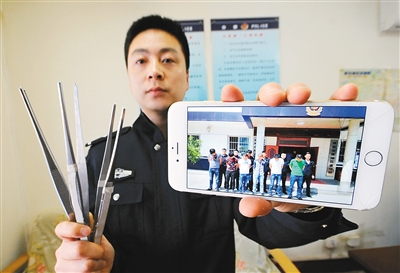 民警展示嫌犯使用的盗窃工具 记者 张宇明 摄