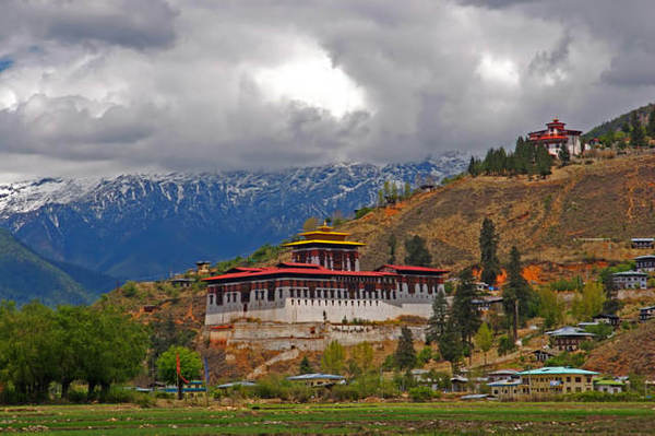 从不丹首都廷布看到的喜马拉雅山脉远景