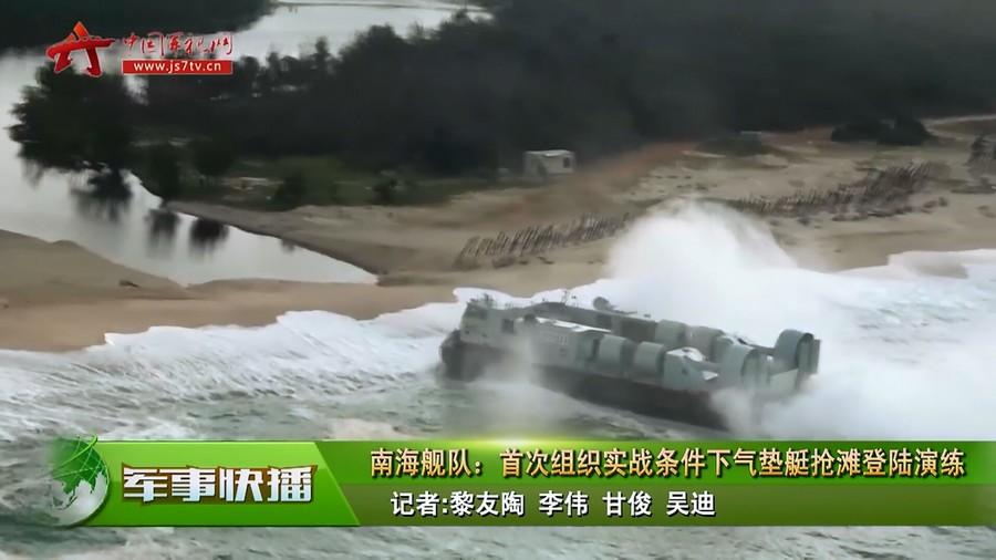 南海舰队3艘气垫艇乘071舰 抢滩官兵爬梯