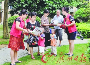 今年3月14日,花都区秀全街举办大型公益活动,当时张阿姨和几位亲戚刚好到汕头观光旅行。因活动需要居民参与,接到活动的通知后,张阿姨马上提早结束行程,连夜赶回来组织居民积极参与第二天的活动。“一句话,随传随到,她真的为社区公益事任劳任怨。”社区居委工作人员如此感慨道。 照顾小区需要帮助的人