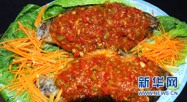 近日,约旦大学文化遗产暨美食展在约旦大学食堂举行,来自中国、利比亚、也门、印度尼西亚、土耳其、巴勒斯坦、泰国、苏丹、叙利亚和东道主约旦等国的学生亲手烹制本国的特色佳肴,排列在各国展台之上。中国的糖醋鱼、叙利亚的慕斯蛋糕、也门的烤鸡饭、泰国的咖喱鸡汤等美食,都汇聚在此次美食展上,让同学们领略到了美食文化的博大精深。图为中国学生马杰制作的糖醋鱼。 新华社记者程春香摄