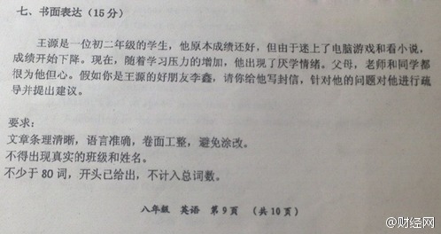 4月26日,湖南常德市中考模拟考试中,语文作文题的阅读材料为TFBOYS一首歌的歌词。有考生因是他们喜欢偶像认为这道题的"难度系数不大",也有考生认为这道题"难写、没有听过这歌"。调查发现不少试卷里都有与"TFBOYS"有关的考试内容。