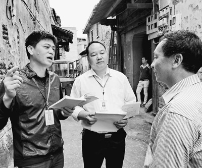 图为建瓯市工作人员在东游镇党城村向村民核实信访问题。