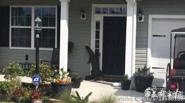 据外媒报道,美国南卡罗来纳州一名男子在遛狗时,意外看见一幕惊人的画面,有只鳄鱼竟在拜访民宅,并“起身敲门”。男子赶紧将这一奇特的景象拍下来。而屋主当时正好外出工作,因此无人应门。(中新网)