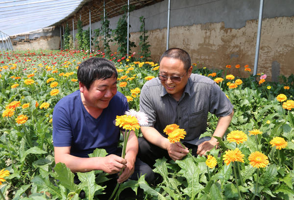 村民的信任,靠得是党支部的奉献精神。村主任张春庆记得清楚,2012年7月11日,一场暴雨袭来,他们忙着帮社员排水防涝,结果支部3人自家的6个棚全淹了,虽说竭力保住了花苗,依然每家损失1万多元。对此,他们没有丝毫后悔。2014年,受市场供求等因素影响,鲜切花价格不景气,当时有的社员沉不住气了,支部一班人忙前忙后跑市场、稳军心,之后鲜切花价格一路看涨,社员收入也越来越多,随便遇个花棚,“村民一提溜,就值千把块”,大伙都高兴地眉开眼笑。