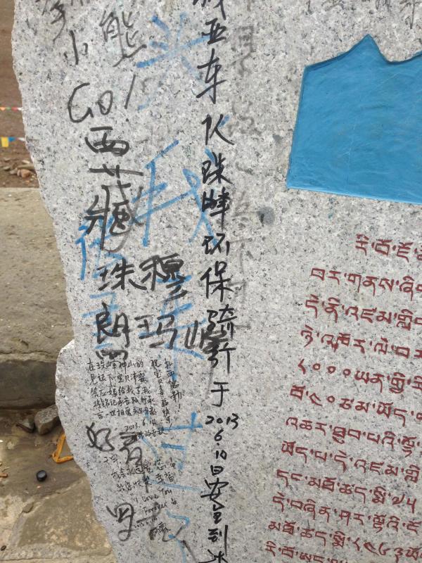加乌拉山珠峰观景台纪念碑上涂满了游客的“心声”。