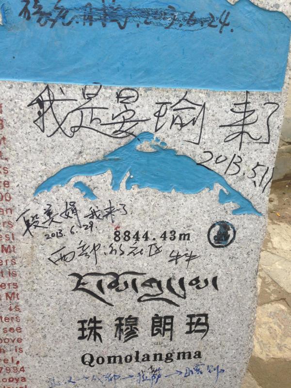 今年5月份以来,珠峰大本营纪念碑上的黑色“涂鸦”又多了起来。