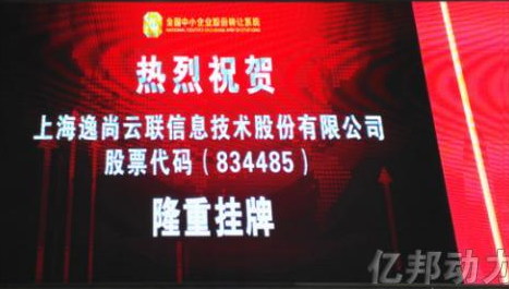 2016年5月5 日上午,上海逸尚云联信息技术股份有限公司(逸尚信息,股票代码834485)上市挂牌仪式在北京隆重举行!