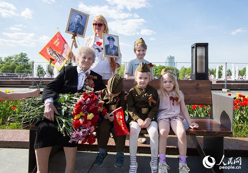 人民网莫斯科5月9日电(记者 屈海齐)5月9日是俄罗斯人民纪念伟大的卫国战争胜利的日子。这一天,整个莫斯科都沉浸在节日的欢乐气氛之中。大街上彩旗飘扬,到处可见纪念胜利的宣传画和标语。莫斯科胜利公园是俄罗斯人庆祝卫国战争胜利的主要场所之一,身着戎装,胸前戴满勋章的老战士是胜利日当之无愧的主角。男女老幼纷纷把鲜花献给他们,青年人和孩子还争相与老战士合影,向他们表达敬意并致以节日的问候和祝贺。