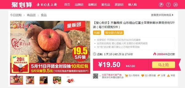 活动还在继续,即日起至13日早上9点,打开手机淘宝扫描下面二维码,或者打开淘宝进入聚划算页面,在“食品”类目即可看到爱心苹果义卖链接。除偏远地区外,均是19.5元5斤包邮。咨询电话:0531-85196720。