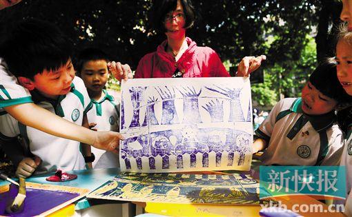 小刀在橡皮上、木板上细细雕琢,一幅幅图画跃然“版”上。昨日,环翠园小学书香节活动之一,“校际藏书票制作展示评比活动”在该校举行。据介绍,用版画制作藏书票是该校的特色项目,多次获得荔湾区奖项。