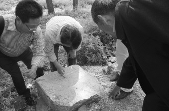岳国奇老先生指着残破的石碑介绍着大圣寺情况。齐鲁晚报 孙越 摄