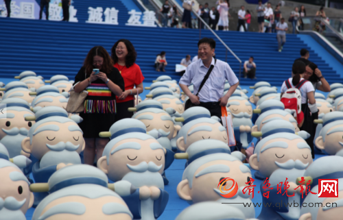 在文博会的入口处,一本书籍的造型前,上百个极具亲和力的孔夫子造型摆满了广场,他们或是若有所思,或是微笑而视,一下子将跨越2500年的孔子拉近到我们的身边,引来众多参展商驻足留影。