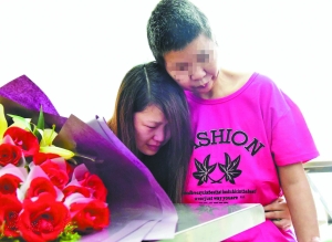 当工作人员搀扶着向冬梅从救助综合楼走出来时,家人飞跑过去,女儿喊着“妈”就哭出了声。向冬梅则一直低着头。父亲捧着一束鲜花献给老伴,他告诉记者,能看到老伴就好了,天天都盼着她回家。