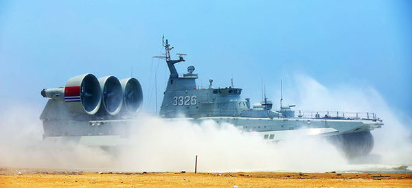 气垫艇抢滩后退滩。徐苗波摄