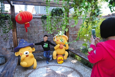 昨日,游客在大兴区魏善庄镇半壁店村游览拍照。新京报记者 吴江 摄