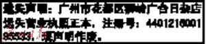刘锦池所有的位于本市白云区(现黄埔区)萝岗镇萝岗圩三级地街79号房屋(属测量3713图14幅32号)的房地产权证(穗房地证字第203317,登记字号:云统字89089号)已遗失。对此声明有异议者,请在30天内书面向广州开发区房地产管理所(地址:广州市黄埔区汇星路81号)提出,并提供相关证明材料,特此声明。声明人:刘锦池。2016年4月20日
