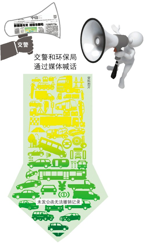 日前,中山市环保局回应称,已对非现场执法系统目前使用的黄标车数据库再次进行核对,并于3月28日、5月6日将最新数据库发至交警支队和各镇区。针对可能出现误拍的情况,市环保局于3月31日到市交警支队拷贝相关数据9万余条,对涉及车辆的环保标志全面审核认定,并于4月15日和5月6日分两次将全部的审核结果反馈到交警支队进行主动撤销。交警支队主动撤销须按照程序进行录入,需要时间才能完成撤销流程。