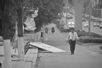 12日上午阳光普照,很是温暖,到了中午之后忽然转阴,到了下午反而狂风肆虐起来,让人接受不了。朋友圈瞬间被“妖风”刷屏。5月12日下午14:22分,枣庄市气象局发布了大风蓝色预警信号。预报显示未来几天枣庄明显降温,15日最高温也仅有21℃左右。图为在新城民生路,一些广告旗子标牌被大风狂吹,市民艰难前行。 本报记者 袁鹏 李泳君 摄影报道