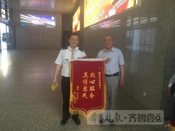 失而复得的任先生为了表达感谢,给曲阜东站和G111次列车送来了锦旗,并拿出1000元现金表示感谢,但被车站和列车都婉拒了。任先生还手写一封感谢信。