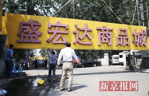 5月18日,有着13年经营历史的盛宏达小商品城的大门牌被吊下,位于海淀区东升镇塔院村双泉堡地区,有着13年经营历史的盛宏达小商品城将正式踏上打包行囊迁往河北燕郊的行程。这也意味着海淀区最大的棚户区改造工程——京昌路楔形绿地棚户区改造项目腾退工作进入尾声,转入建设阶段。除了曾经和唐家岭比肩的小月河群租聚集地腾退完成外,随着盛宏达、万家灯火两大市场的关闭,也将宣告该区域内11家大型综合市场的腾退即将完成。