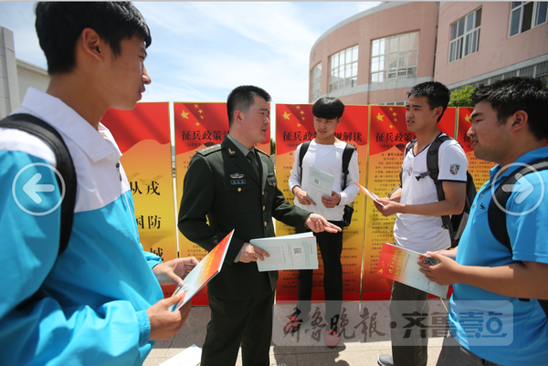 5月18日上午,市北区人武部到青岛科技大学开展征兵政策进校园活动。活动中,针对“网上应征报名如何操作”“大学生入伍提干”等问题,进行现场解答。截至8月5日,有应征意向的高等院校应届毕业生、在校生、高职高专应届毕业生可在夏秋季征兵开始前登录“征兵网”实名注册,进行网上兵役登记和应征报名。据了解,6月中旬将对报名的高校应征青年进行体检、政治考核和预定兵工作。