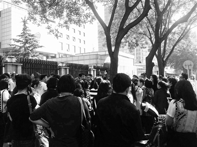 昨天上午,上百名在聚智堂交费的家长在海淀公安分局门口向警方说明情况