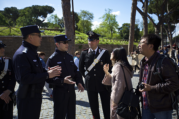 协助意大利警方处理与中国游客相关的安全事务,是中国警察参与此次合作的首要任务。4名中国警察与意大利警察一起分别在罗马和米兰徒步巡逻。他们每天平均徒步巡逻6小时左右,覆盖范围包括罗马和米兰主要景点、华人聚居区,偶尔还会前往治安形势较为复杂的车站、地铁站。