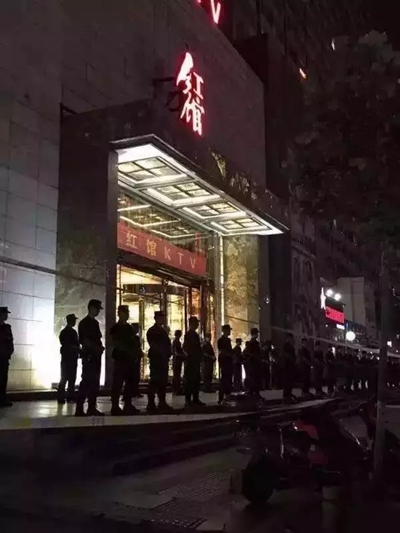 郑州警方深夜端掉一涉黄KTV 6车涉案人员被带走