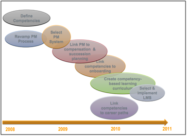 绝大多数人才管理领先的公司都是从构建胜任力模型开始的,因为胜任力模型是人才评估和发展的依据。调研机构Bersin在人才管理趋势与最佳实践报告中列举了一个典型案例:一家公司在3-5年时间内建立起一体化的人才管理体系,从2008年开始,绩效管理变革、搭建继任计划、建立学习体系等等,一系列人才管理一体化实践的起点即是建立胜任力模型。